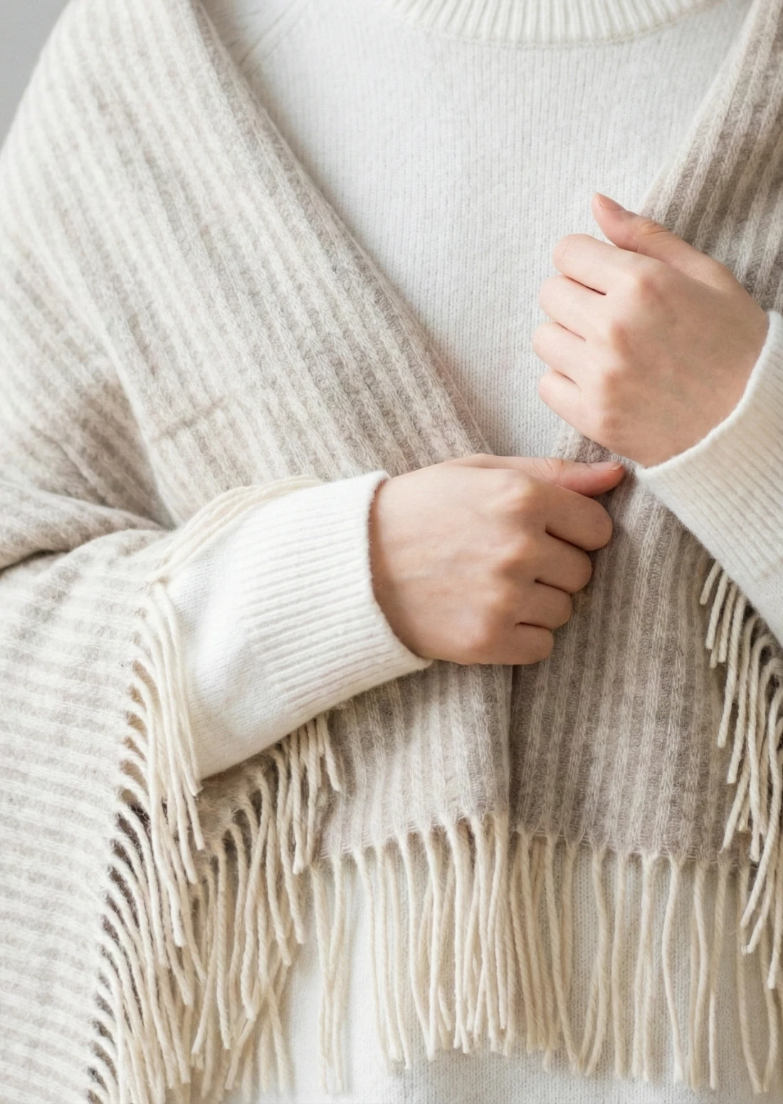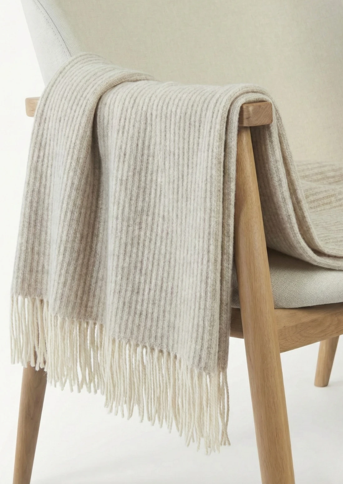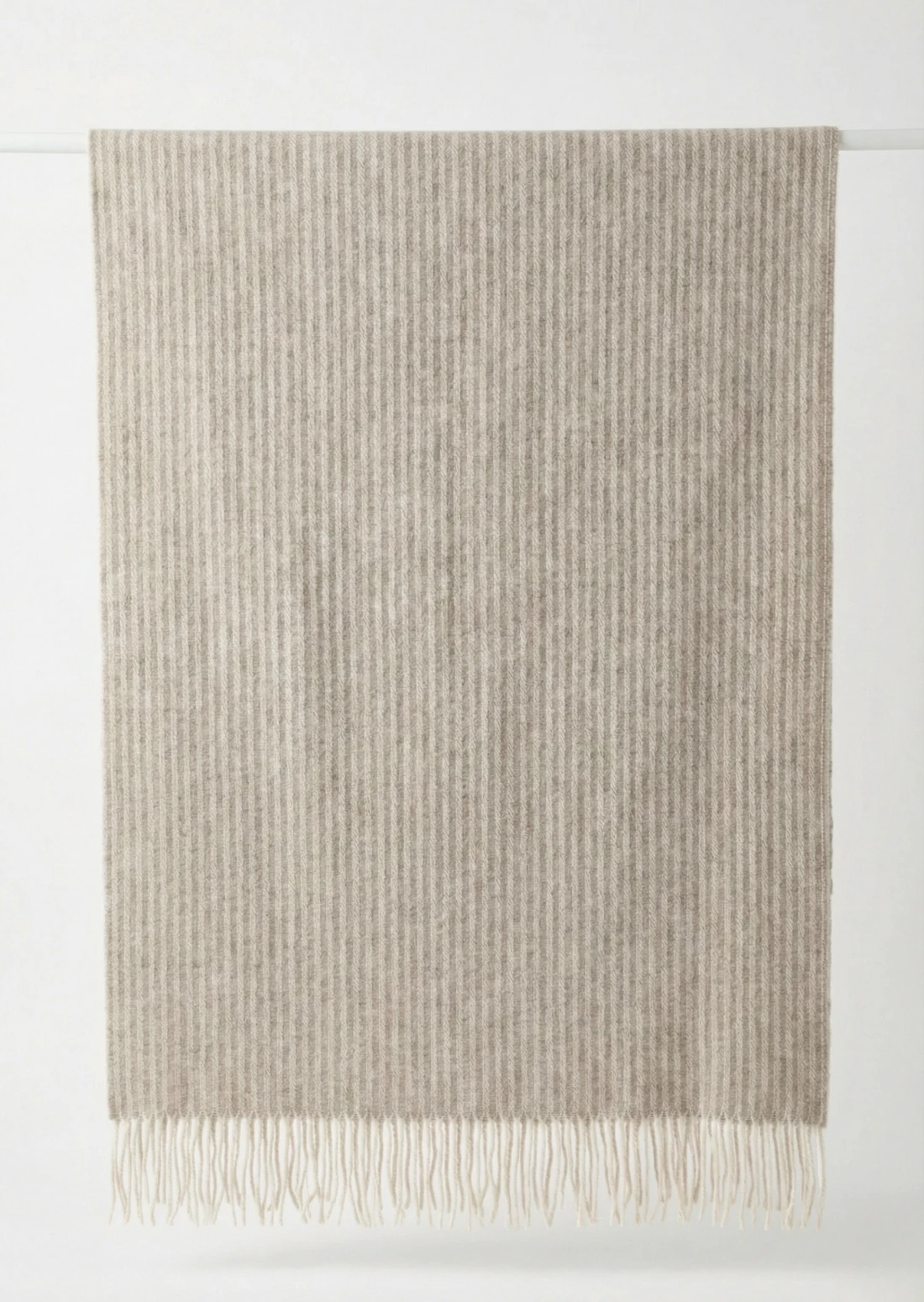 Koc ANDORA STRIPE wełniano-kaszmirowy z frędzlami – jasny beż – 140 x 200