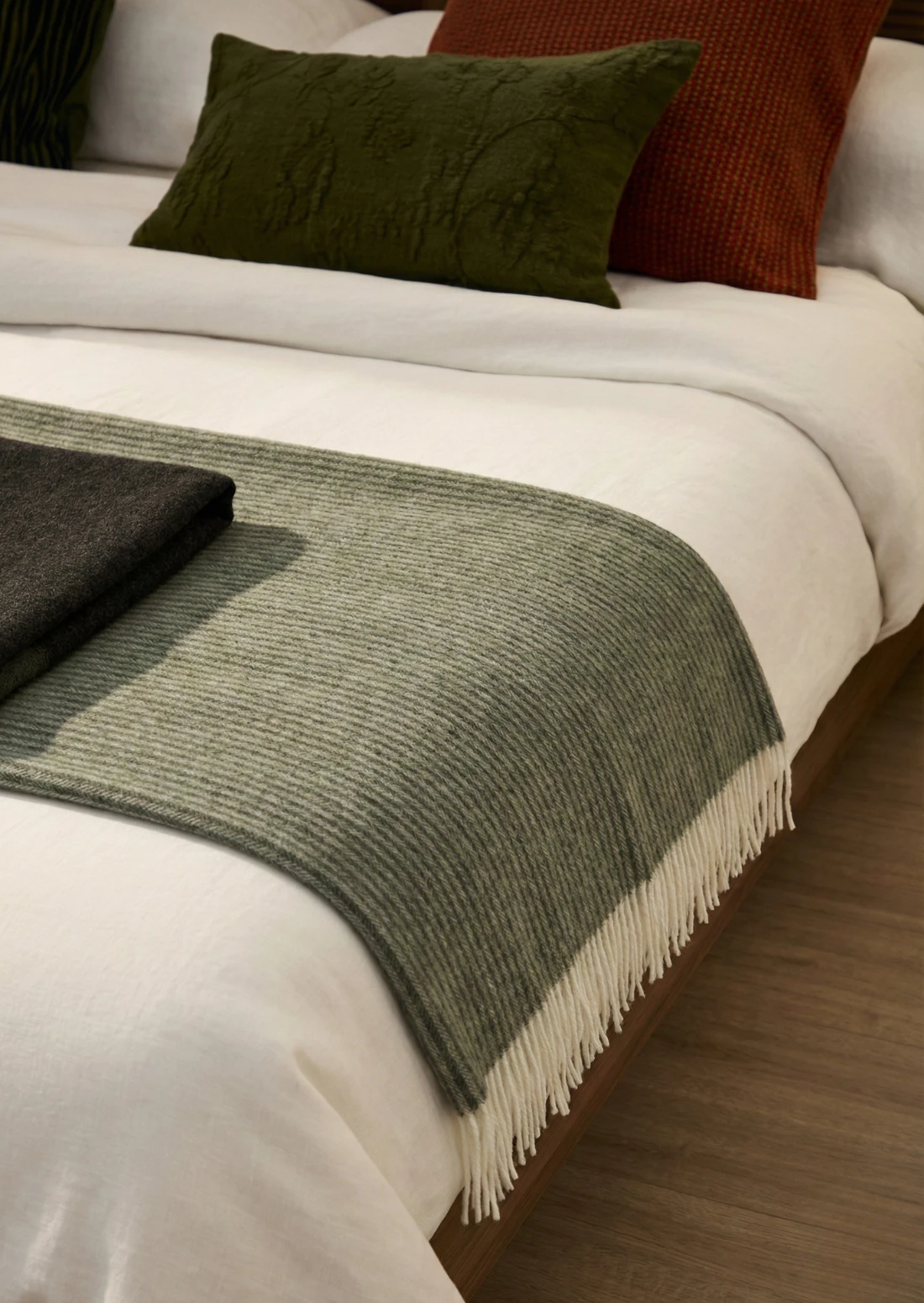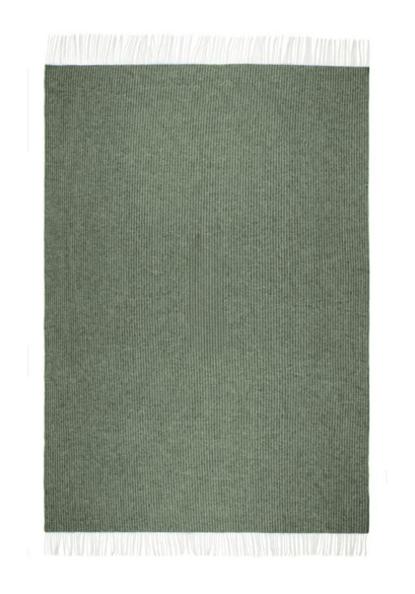 Koc ANDORA STRIPE wełniano-kaszmirowy z frędzlami – khaki – 140 x 200