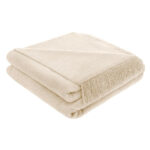 Koc jest bardzo miły i gruby, piękny kremowy kolor. U mnie służy jako narzuta na łóżko. Polecam.