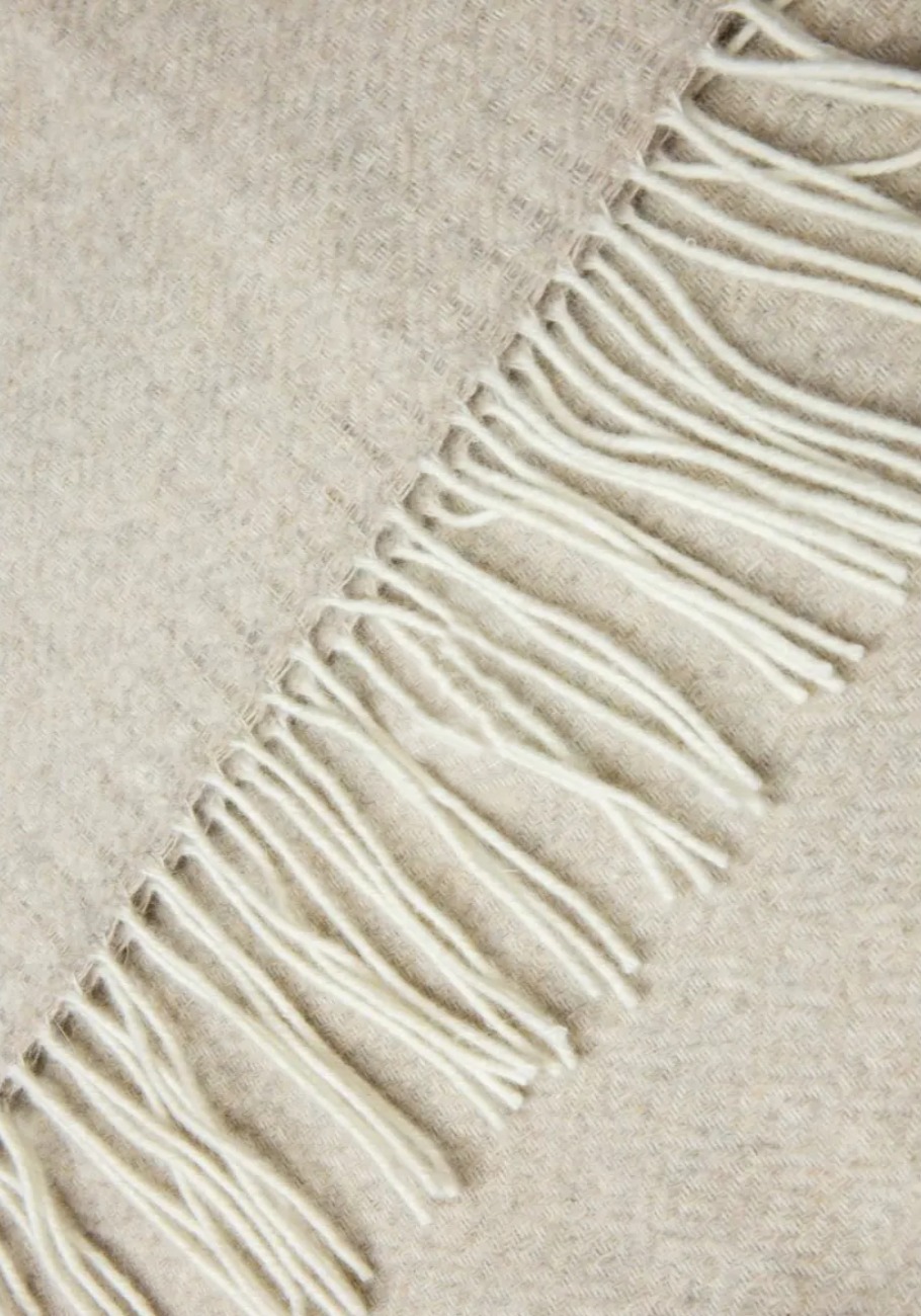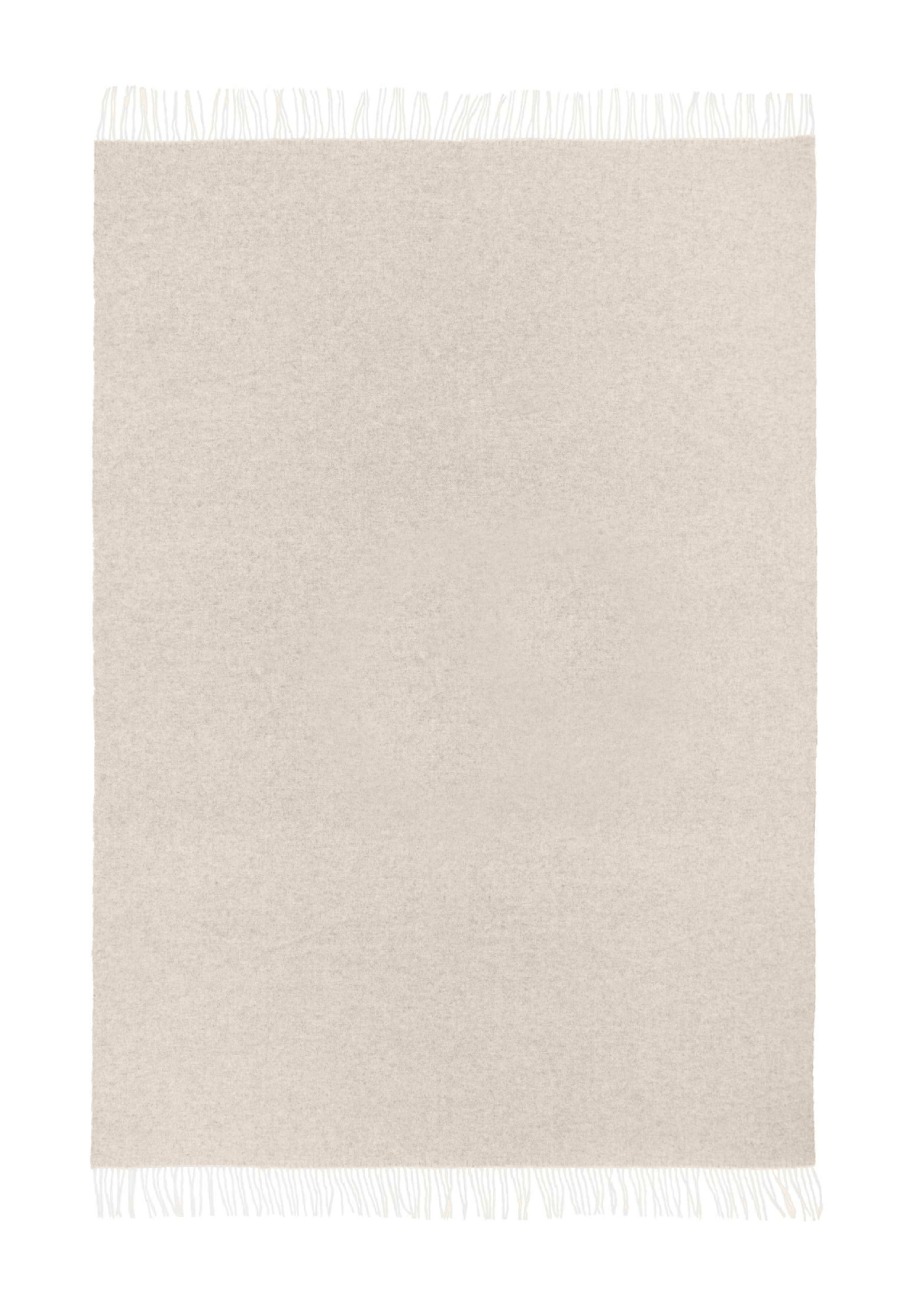 Koc CUBA wełniano-kaszmirowy z frędzlami – jasny beż – 140 x 200