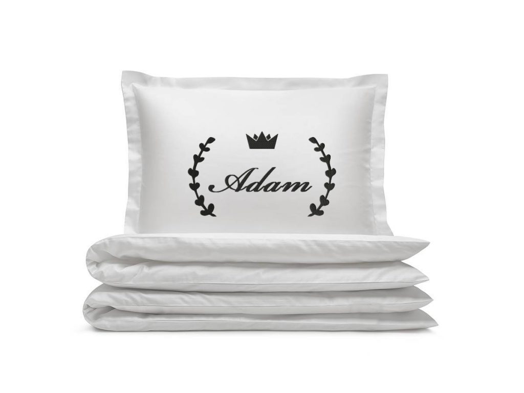 Haft znajduje się na środku poduszki. Indywidualny projekt sprawia, że pościel jest niepowtarzalna.