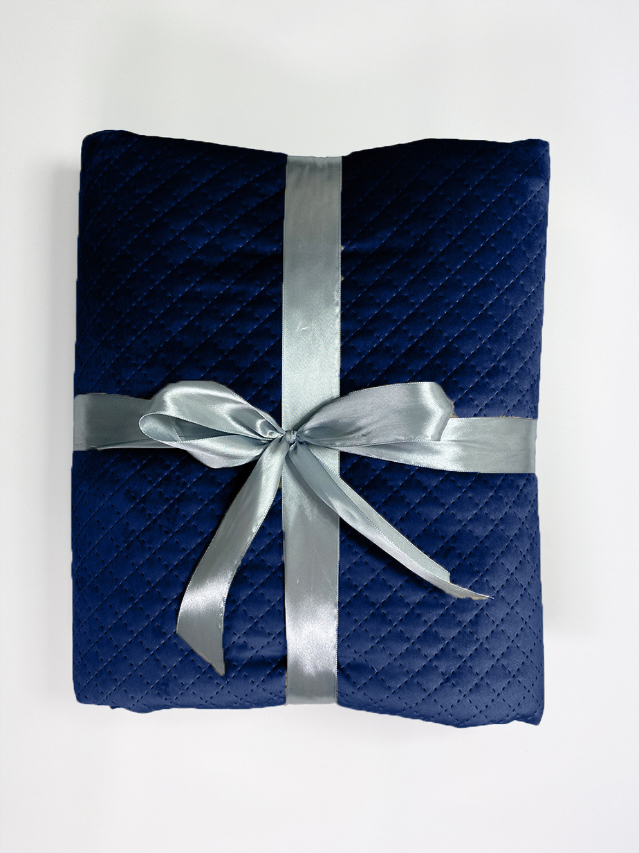 Narzuta z wyjątkowej tkaniny VELVET podszyta specjalną, dekoracyjną tkaniną zapobiegająca się zsunięciu z łóżka.