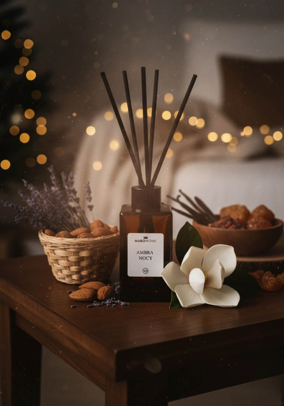 Każda kompozycja MARO HOME powstaje z wysokiej jakości olejków zapachowych, dzięki czemu zapach jest stabilny, nasycony i utrzymuje się nawet do 8–10 tygodni (w zależności od warunków w pomieszczeniu). Patyczki rattanowe rozprowadzają aromat w sposób ciągły, tworząc subtelne tło: wyczuwalne, ale nie nachalne. Wnętrze zyskuje bardziej dopracowany charakter, a atmosfera staje się spójna i harmonijna.