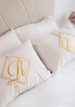 Poduszka z wyjątkowej tkaniny VELVET z indywidualnym haftem na poduszce rozmiar 40×60