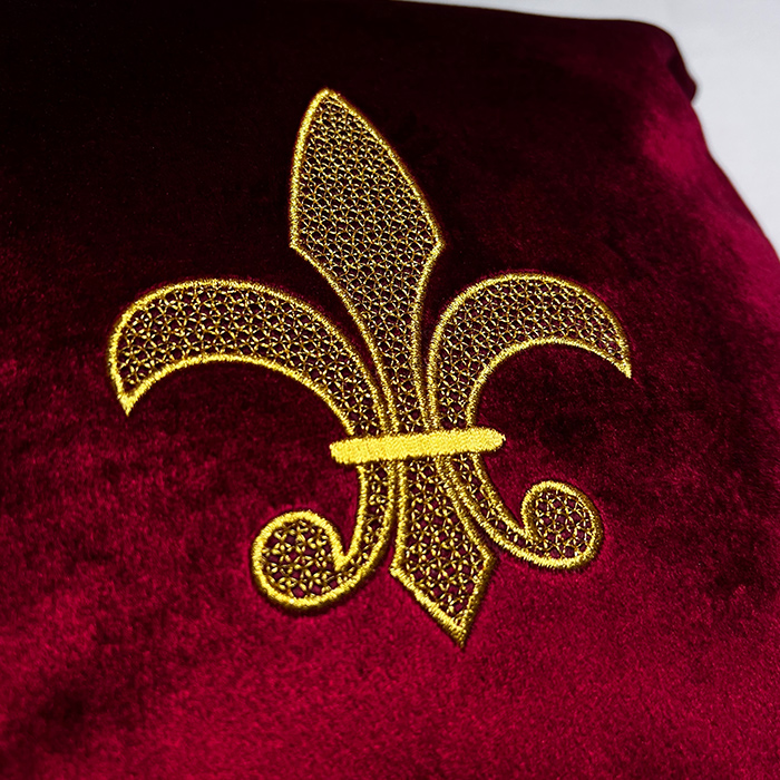 Haft znajduje się na środku poduszki.