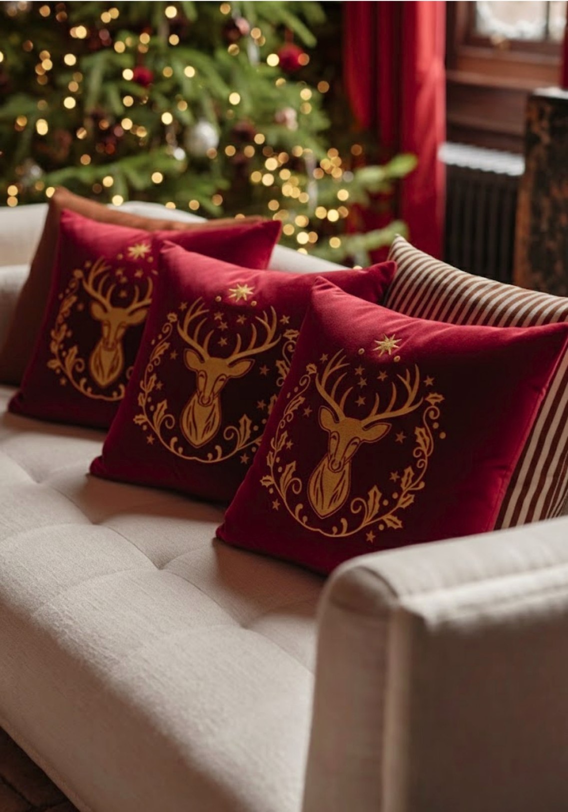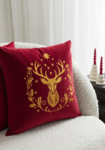 Poduszka VELVET z haftem Golden Reindeer