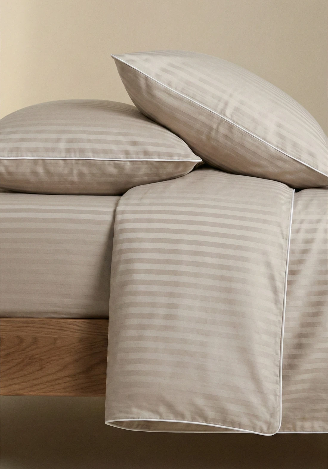 Wzór na pościeli nie blaknie. To zasługa wzoru wykonanego na krosnach, który przeplata satynowe i matowe nitki. Nadaje to również bardzo eleganckiego wyglądu, a pościel pasuje do sypialni w stylu klasycznym oraz nowoczesnym.