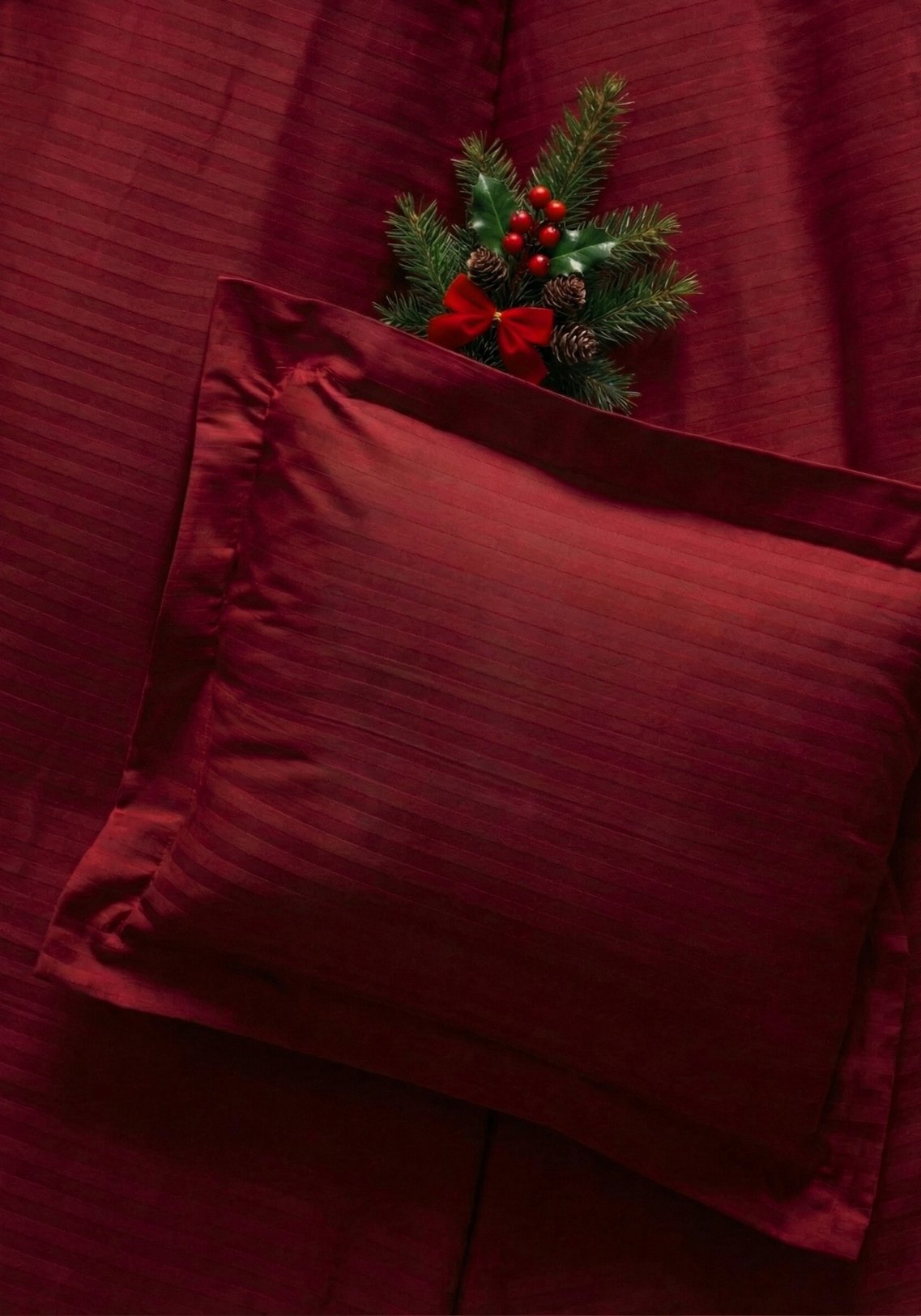 Prześcieradło, dodatkowe poszewki 50×60 oraz poszewka na długą poduszkę w niestandardowym rozmiarze 40×160 zostały uszyte dokładnie tak, jak prosiłam — z adamaszku w kolorze christmas red, dzięki czemu całe zamówienie tworzy spójną, niezwykle elegancką całość.