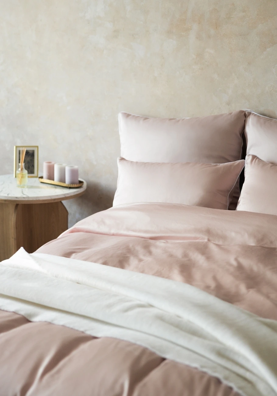 Pięknie uszyta i bardzo dobra jakościowo pościel. Zachwyca swoim delikatnym, różowym kolorem z lekkim połyskiem.