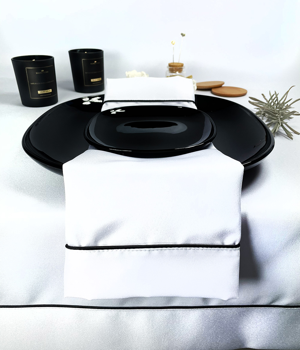 Serweta Veneto Bianco – czarna lamówka