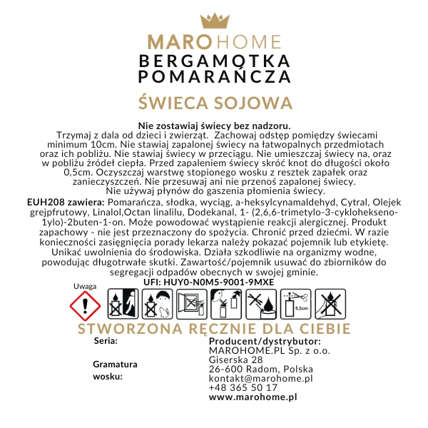Skład: naturalny wosk sojowy, kompozycja zapachowa, knot