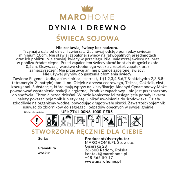 Skład: naturalny wosk sojowy, kompozycja zapachowa, knot