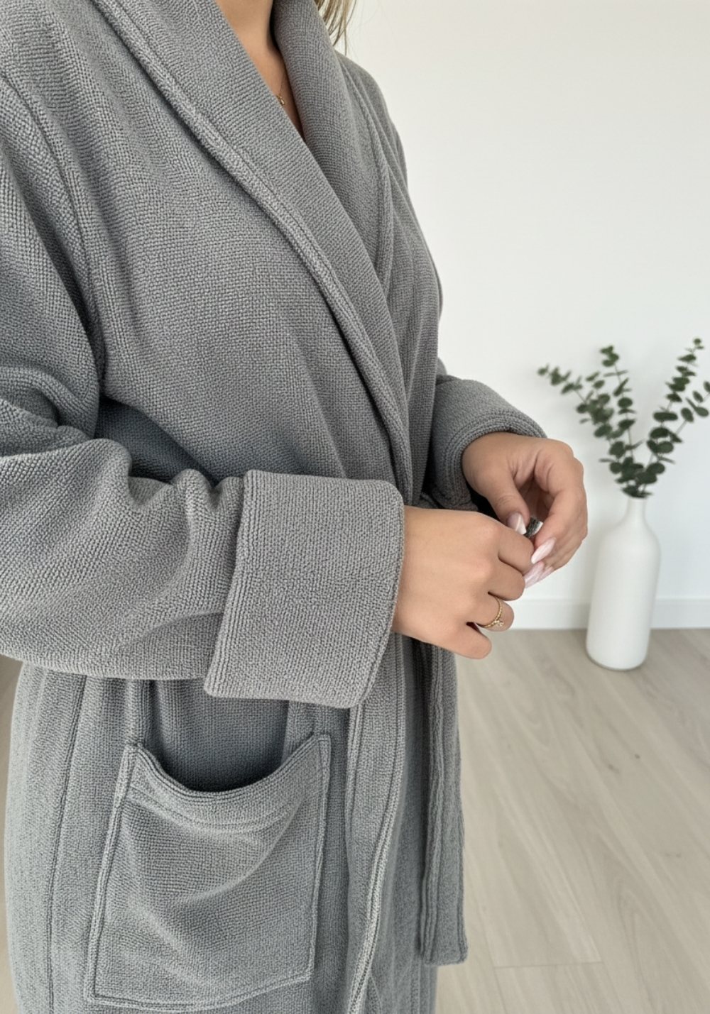 • Pasek do przewiązania w talii, który pozwala dopasować szlafrok do sylwetki