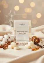 Ozon i limonka nadają kompozycji lekkości, jak pierwszy chłodny powiew o poranku. W sercu rozwija się jaśmin, róża i miękki akord kaszmiru, otulający jak ciepły, miękki koc. Wanilia, bursztyn, piżmo i drzewo sandałowe w bazie tworzą kojącą, kremową mgiełkę zapachu, która uspokaja i wprowadza do domu atmosferę cichej, kaszmirowej przyjemności.