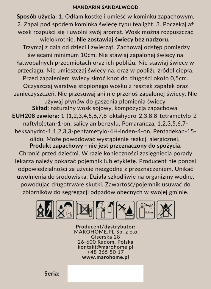 Skład: 100% naturalny wosk sojowy + kompozycja zapachowa