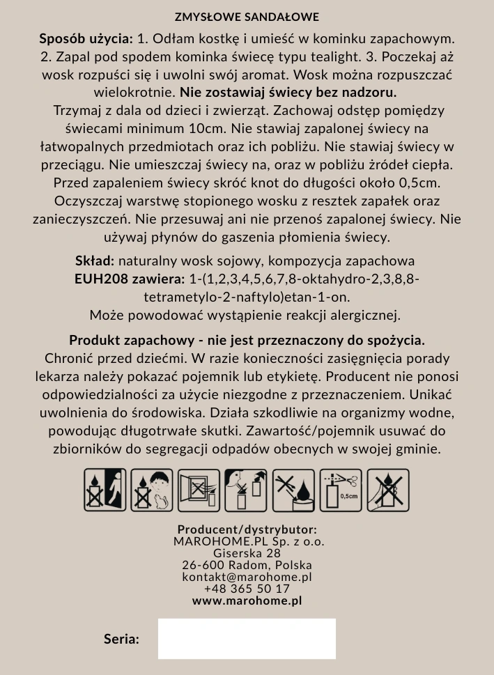 Skład: 100% naturalny wosk sojowy + kompozycja zapachowa